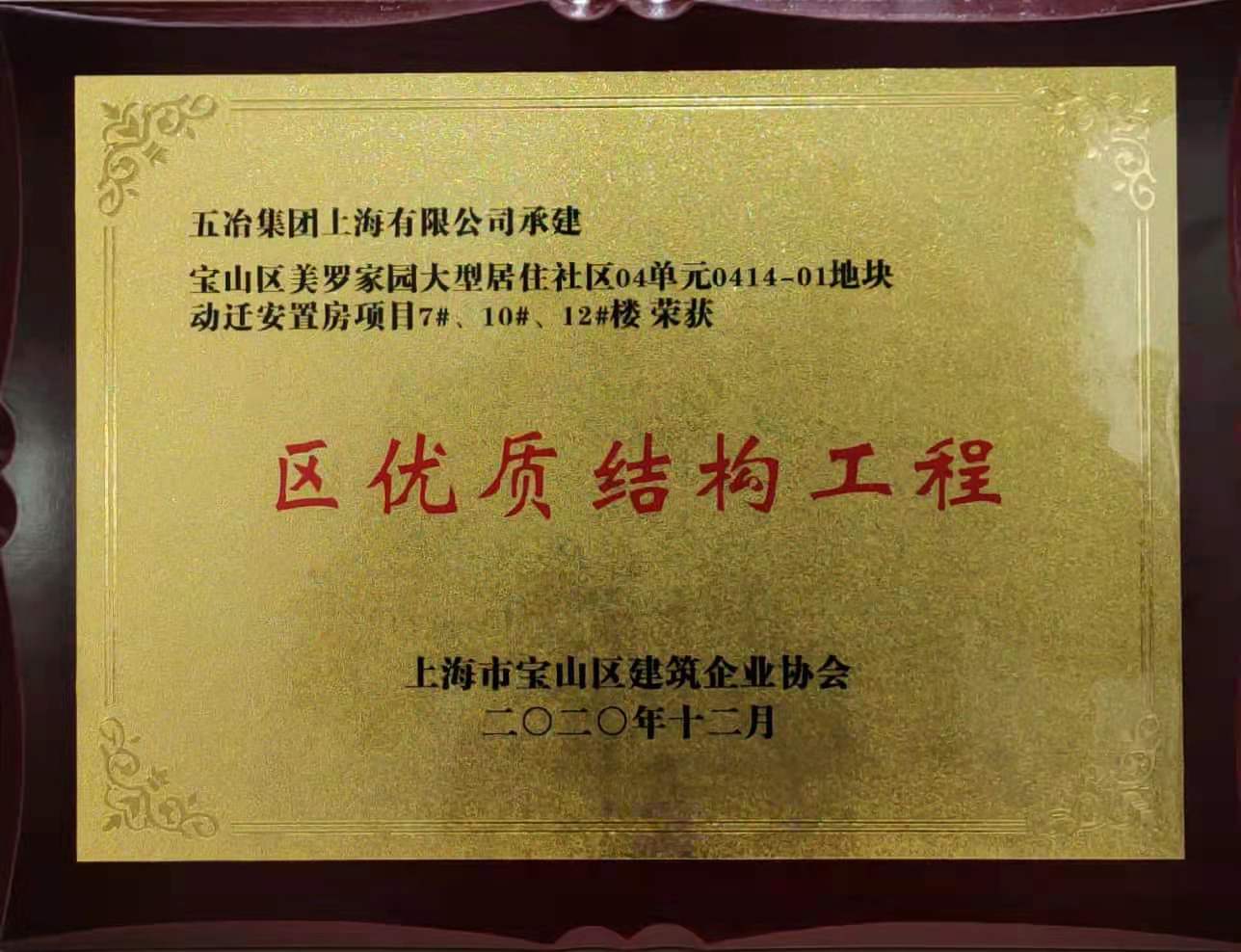 寶山區美羅家園大型居住社區04單元0414-01地塊動遷安置房項目7#、10#、12#樓—2020年上海市寶山區優質結構工程