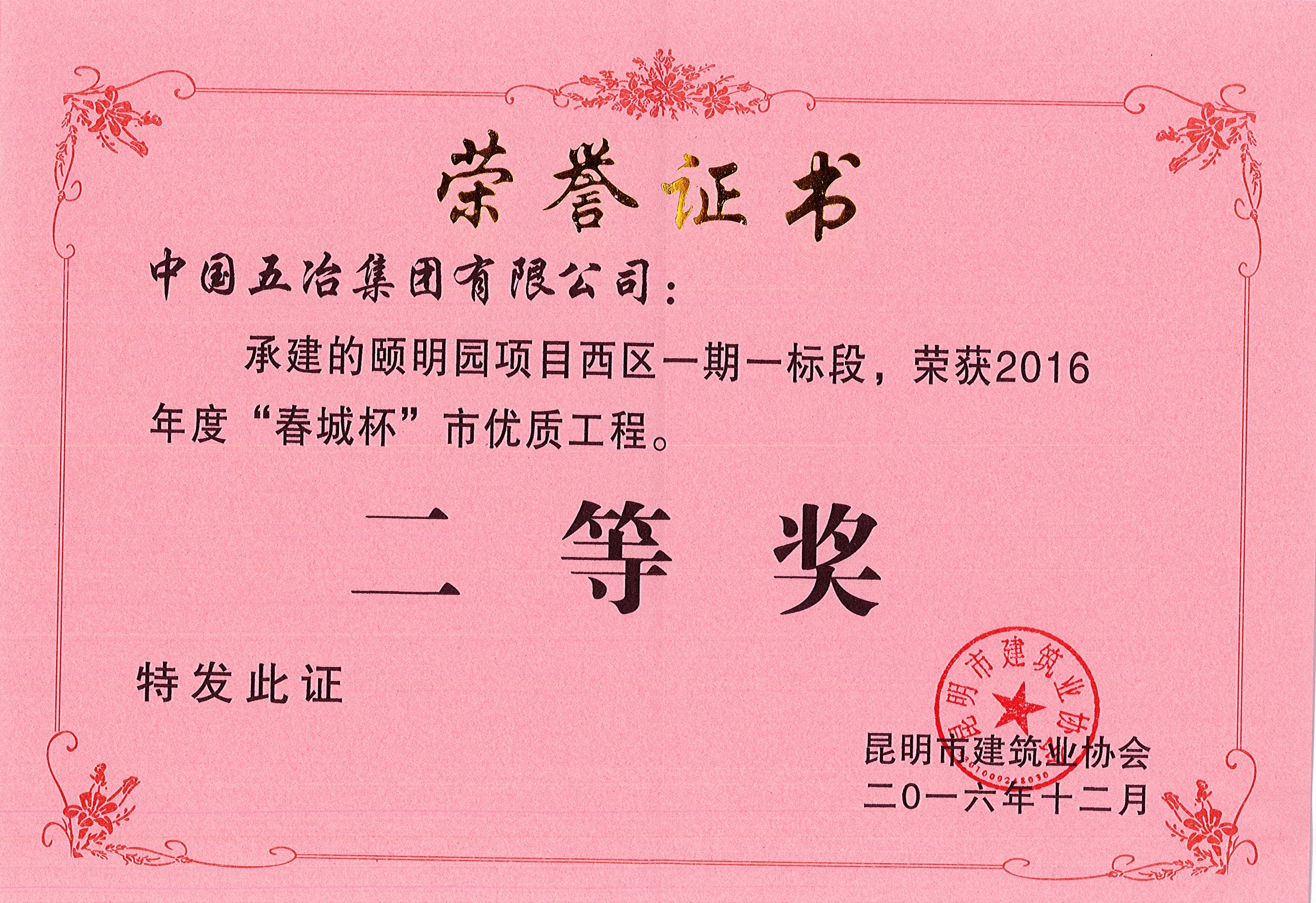 頤明園項目西區一期一標段—2016年度昆明市春城杯二等獎