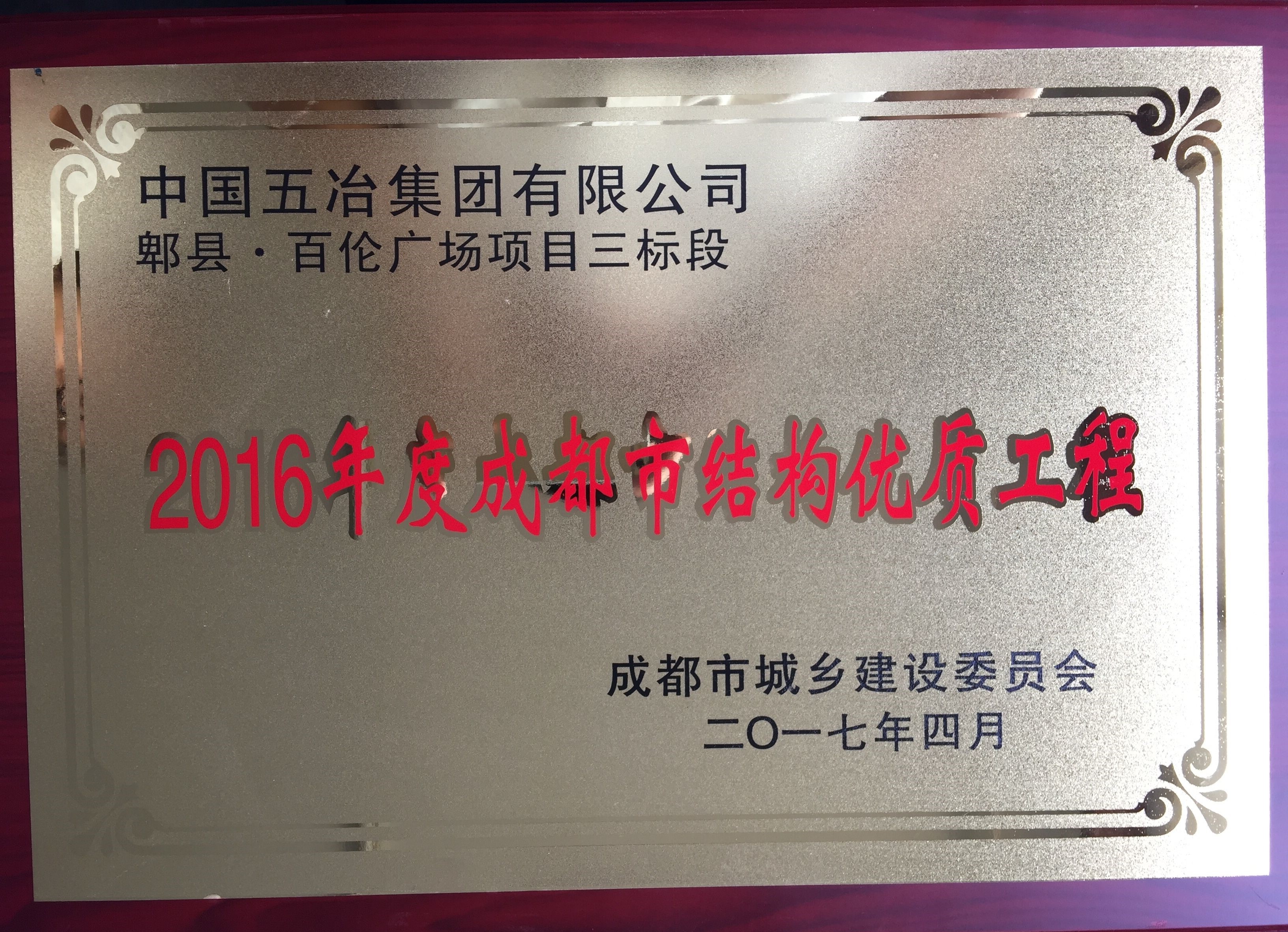郫縣百倫廣場項目三標段—2016年度成都市結構優質工程