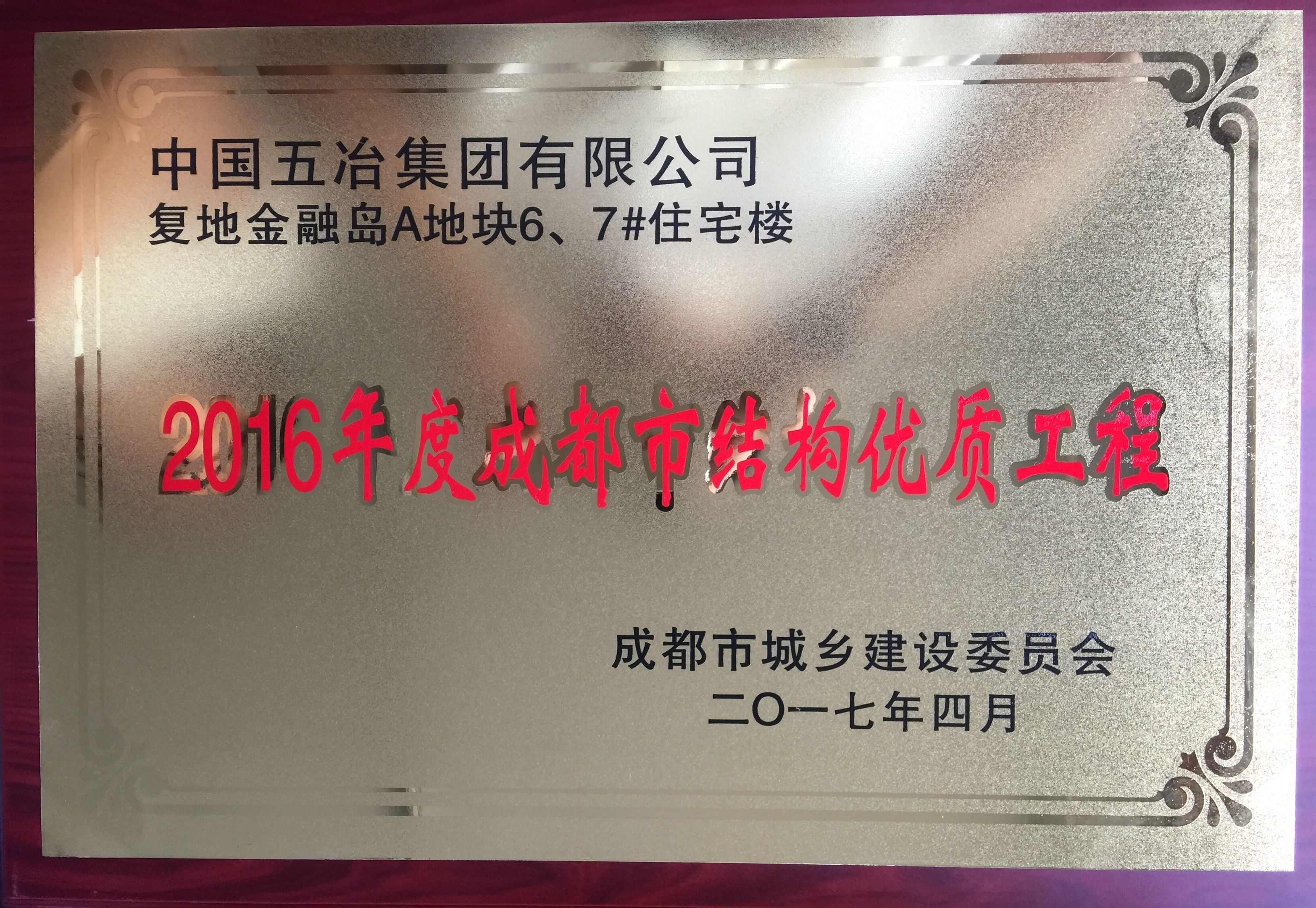 復地金融島A地塊6、7#住宅樓—2016年度成都市結構優質工程