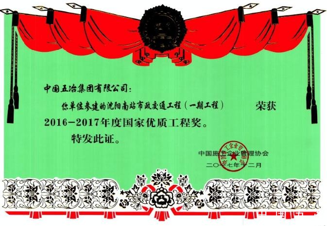 沈陽南站市政交通工程(一期工程)-2016-2017年度國家優質工程獎