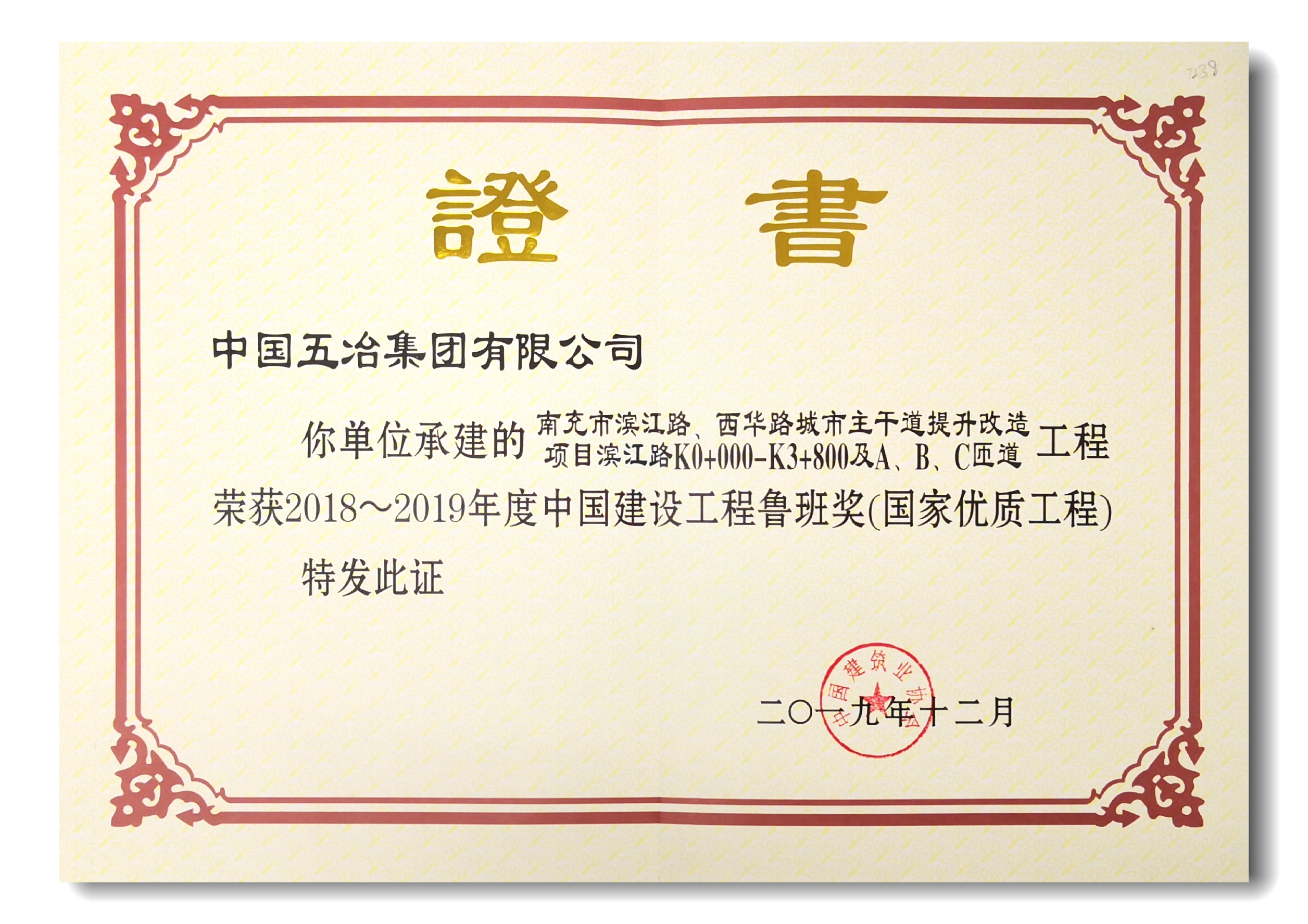 南充市濱江路、西華路城市主干道提升項目——2019年度魯班獎