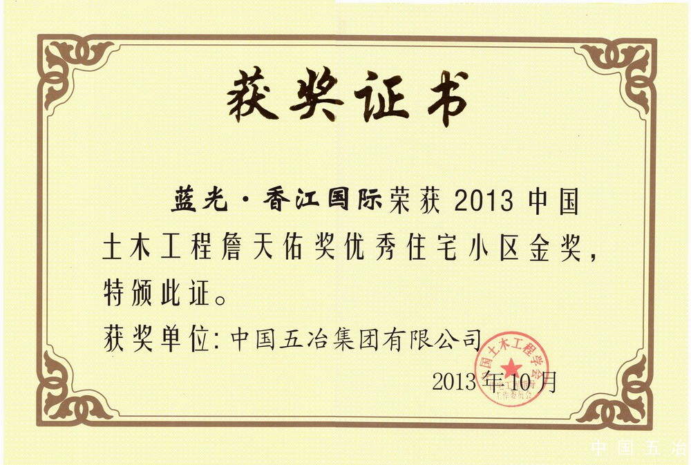 藍光·香江國際項目-2013年中國土木工程詹天佑獎優秀住宅小區金獎