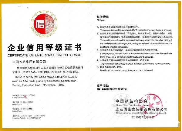 中國鋼結構協會企業信用AAA級