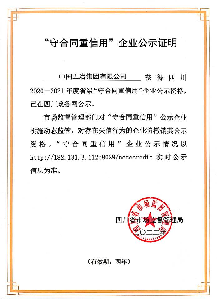 四川省守合同重信用企業