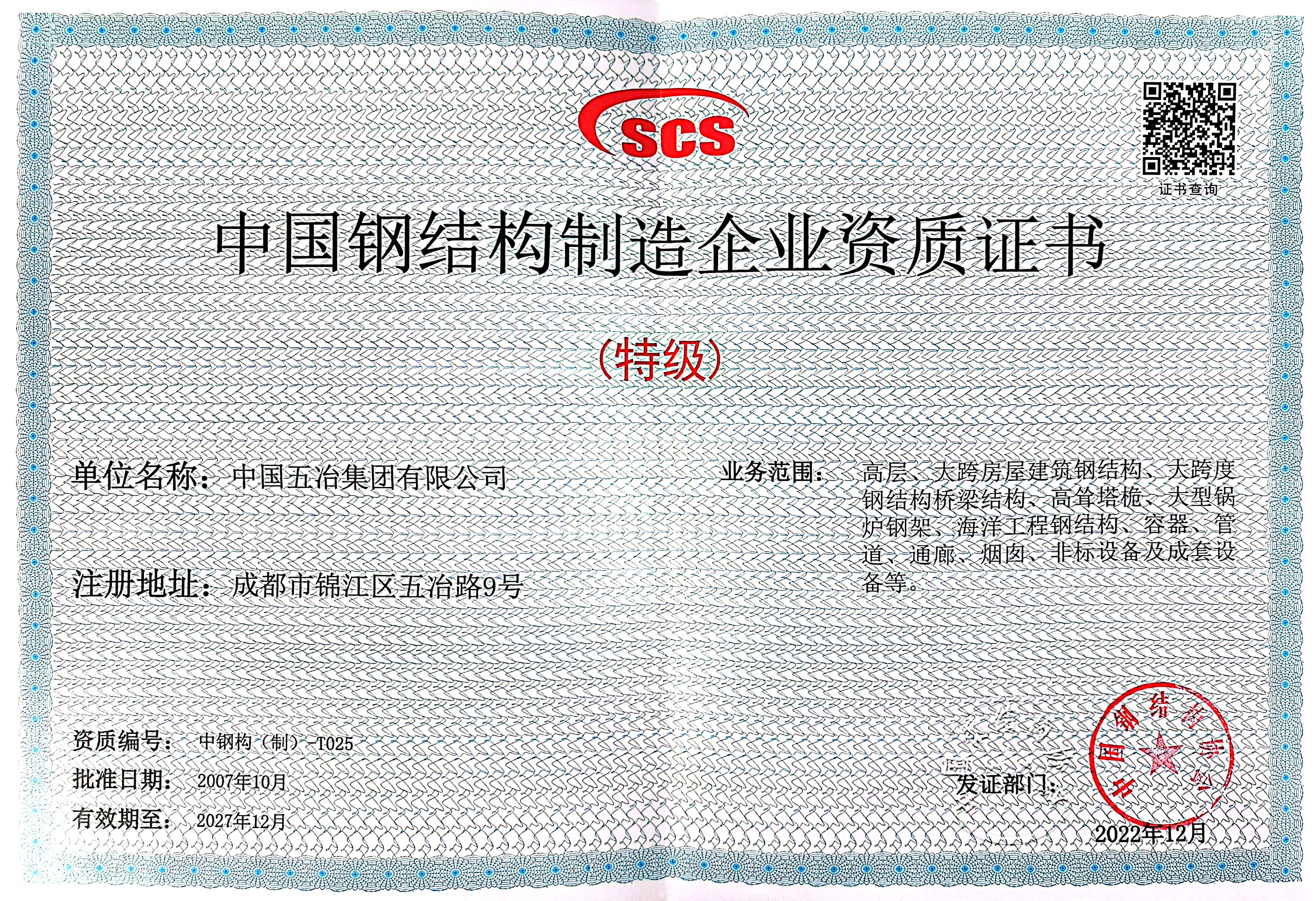 中國鋼結構制造企業資質(特級)