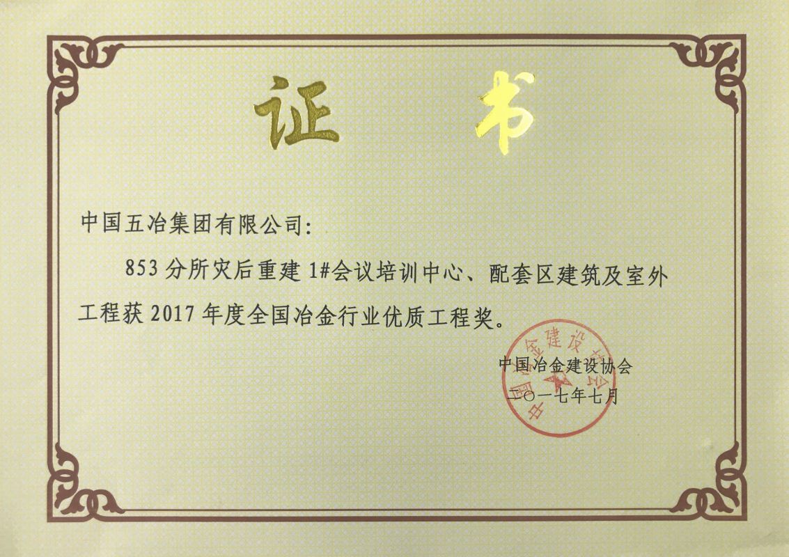 853分所災(zāi)后重建1#會議培訓(xùn)中心、配套區(qū)建筑及室外工程-2017年度全國冶金行業(yè)優(yōu)質(zhì)工程