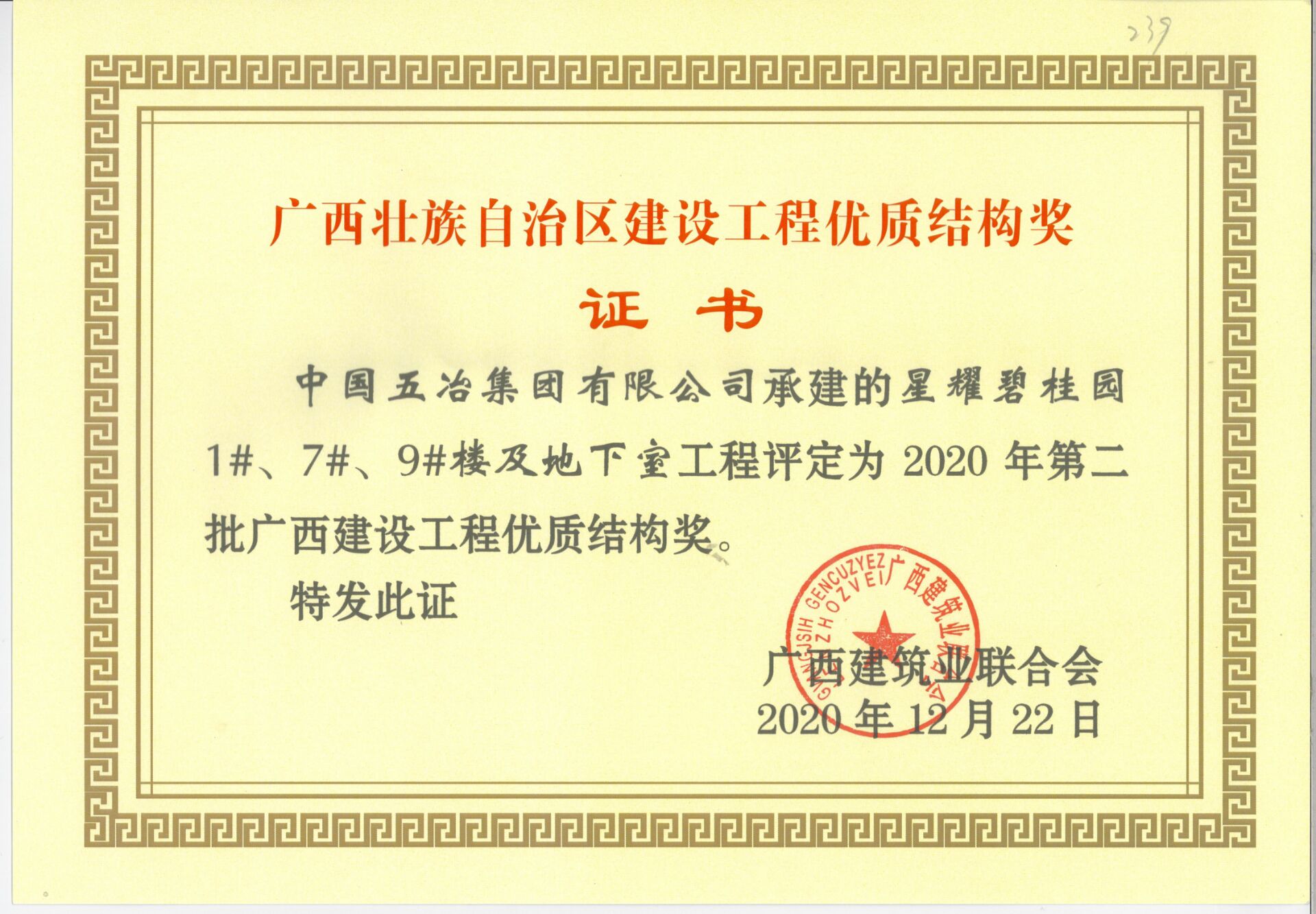 星耀碧桂園1#、7#、9#樓及地下室工程—2020年第二批廣西建設(shè)工程優(yōu)質(zhì)結(jié)構(gòu)獎
