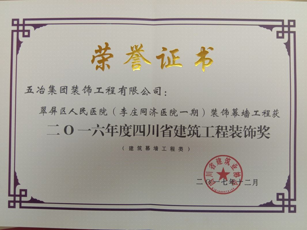 翠屏區(qū)人民醫(yī)院(李莊同濟醫(yī)院一期)裝飾工程-四川省建筑工程裝飾獎(幕墻類)