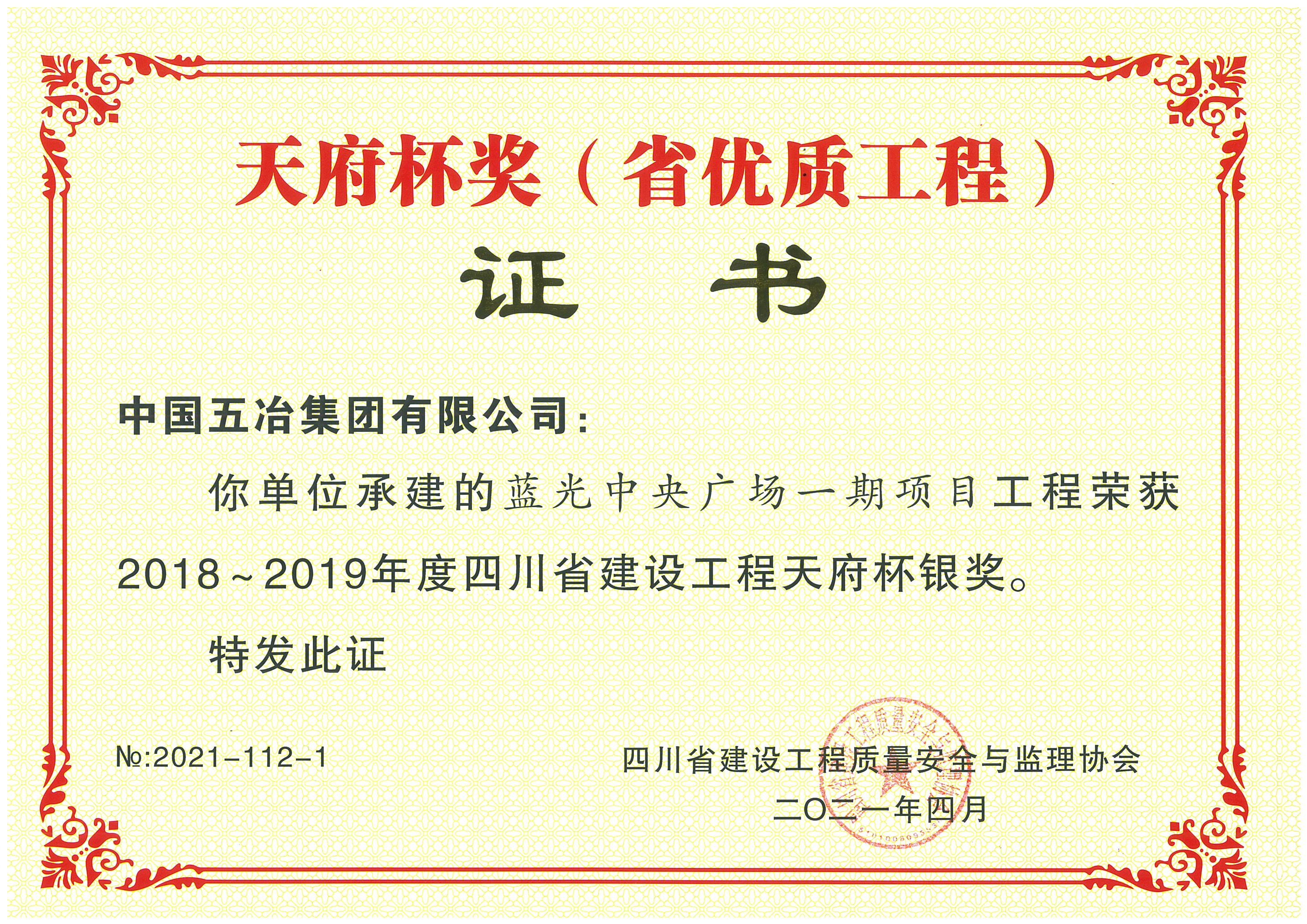 藍光中央廣場一期項目-2018-2019年度四川省天府杯銀獎