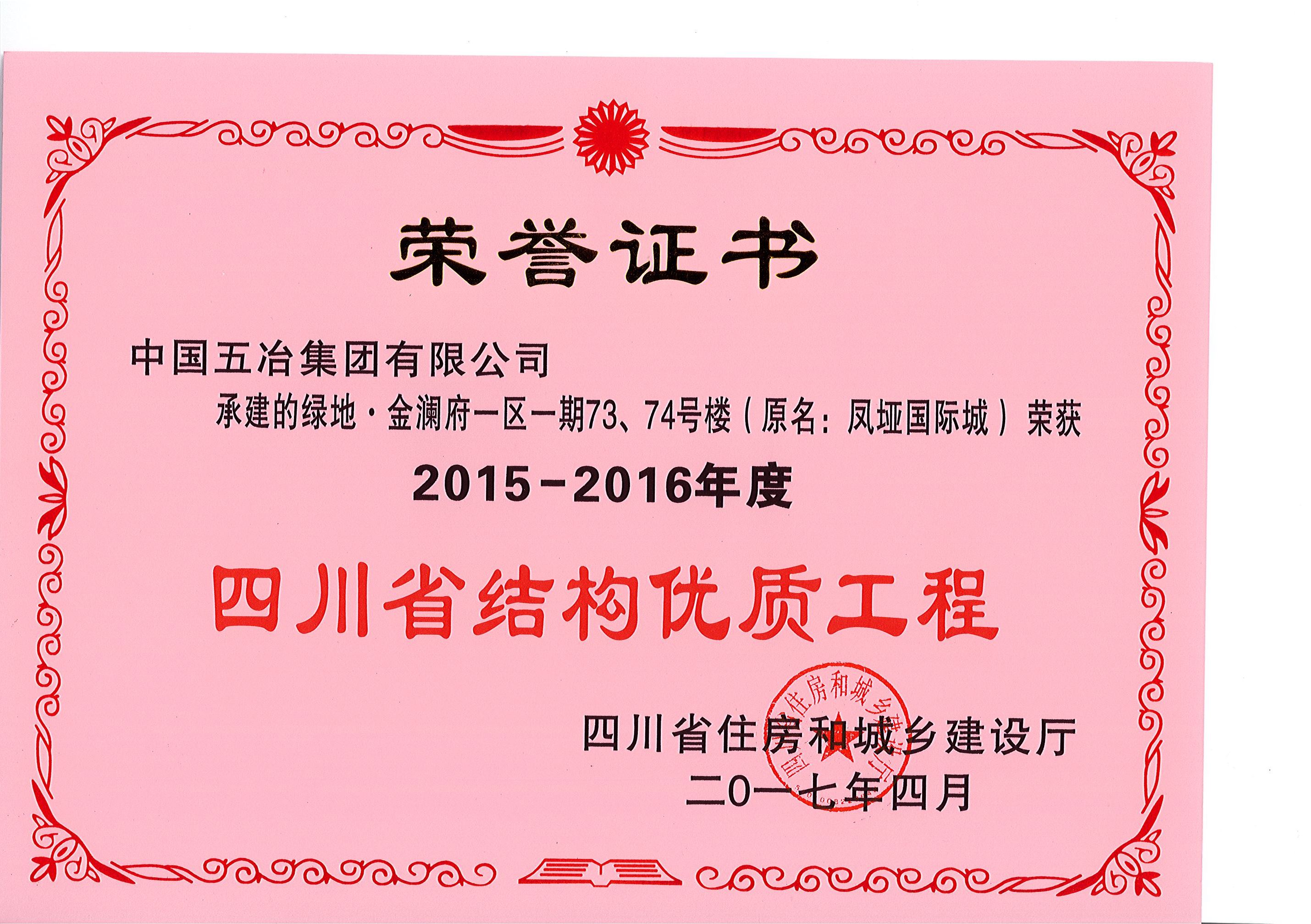 綠地.金瀾府一區一期73、74號樓—2015-2016年度四川省結構優質工程