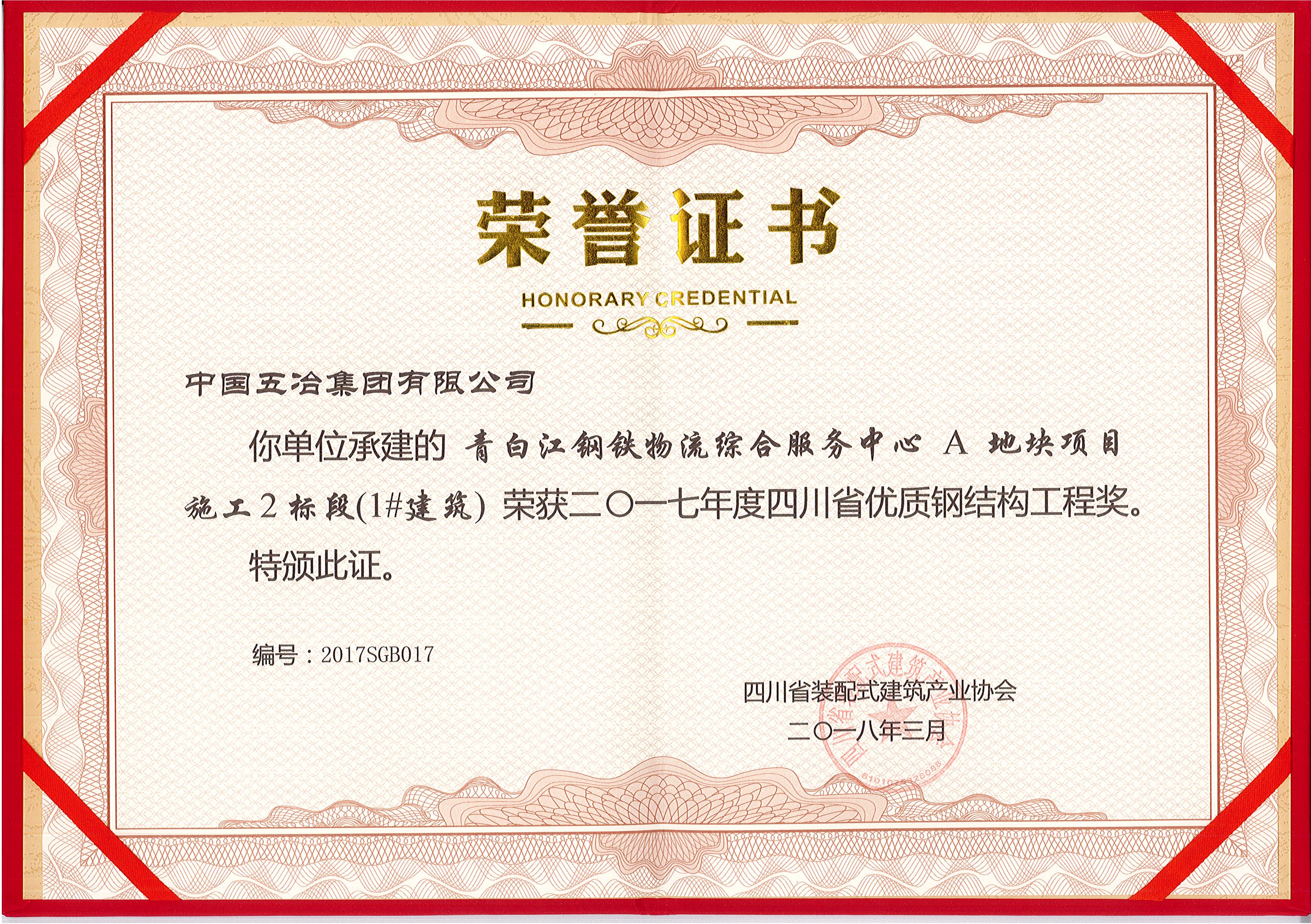 青白江鋼鐵物流綜合服務中心A地塊項目(1#建筑)—2017年度四川省優質鋼結構工程獎