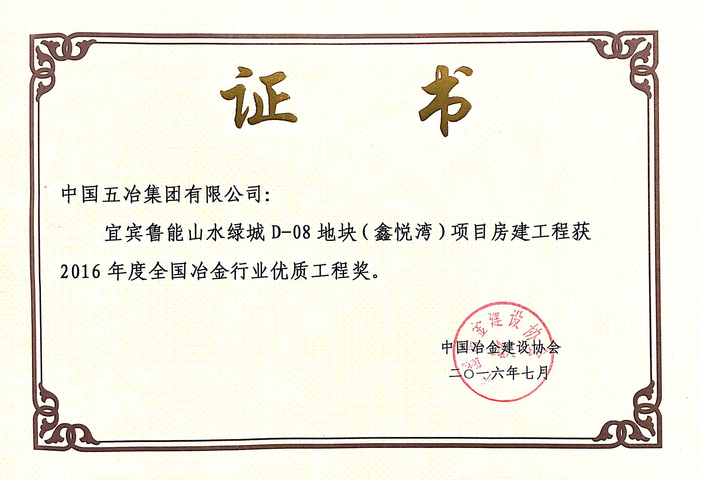 宜賓魯能山水綠城D-08地塊(鑫悅灣)項目—2016年度全國冶金行業優質工程獎