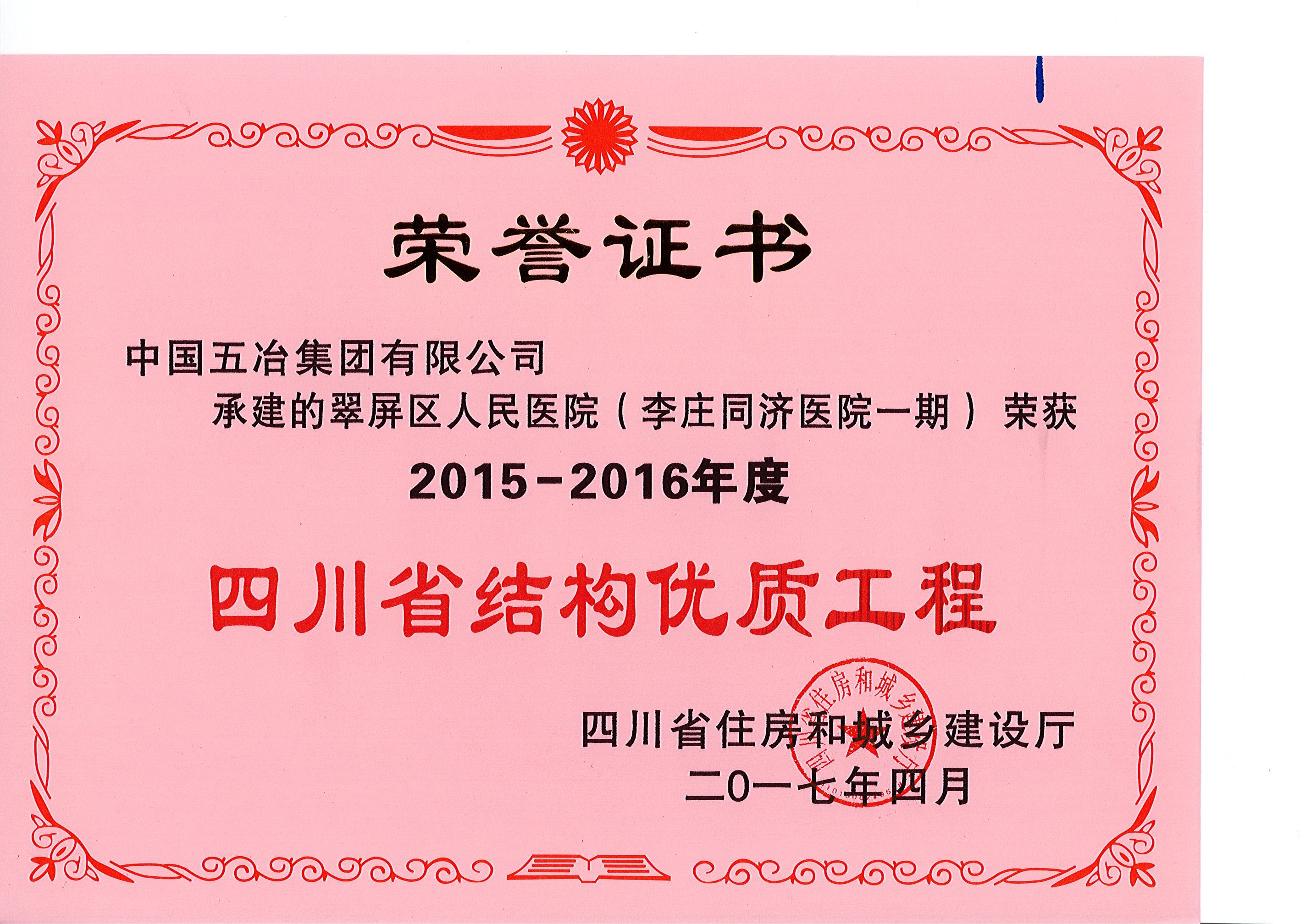 翠屏區人民醫院(李莊同濟醫院項目一期)—2015-2016年度四川省結構優質工程