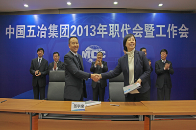 會議期間,集團公司職工首席代表、工會主席周悅靜與集團公司首席代表、董事、總經理蒙昌嘉簽訂了《中國五冶集團2013年度職工工資集體協議》,公司董事長、黨委書記程并強與公司董事、總經理蒙昌嘉簽訂了《經營承包責任書》,公司董事、總經理蒙昌嘉與副總工程師唐世榮簽訂《新技術產品經營管理責任書》、與四川地區各分子公司經理簽訂了《經營承包責任書》。