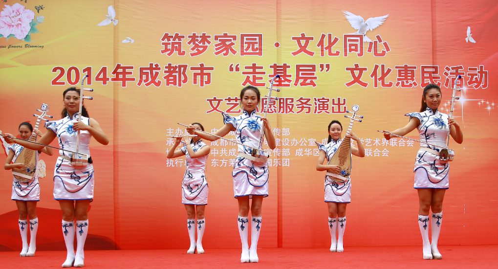 5月25日下午3點,成都市委宣傳部主辦的2014“走基層”文化惠民活動走進五冶社區,在新華公園廣場舉行慰問演出。東方茉莉女子國樂團等知名演藝團體和馬渲子、郭仕軍、何剛等一批國家一級演員、四川青年喜劇演員、男高音歌唱家等本土文化名人到場獻藝。我公司教培中心選派的舞蹈《歡歌起舞》代表中國五冶集團青年志愿者同臺演出。
