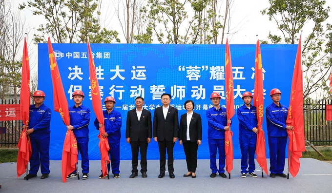 為做好大運會各項保賽準備工作,確保大運會圓滿成功,3月18日,第31屆世界大學生夏季運動會倒計時100天之際,中國五冶集團在大運會主會場東安湖公園召開“決勝大運‘蓉’耀五冶”保賽行動誓師動員大會。集團公司領導陳陽、周悅靜、譚興山,保賽領導小組成員,相關參建單位專職副書記、施工副總經(jīng)理,保賽黨員服務隊成員等參加活動。